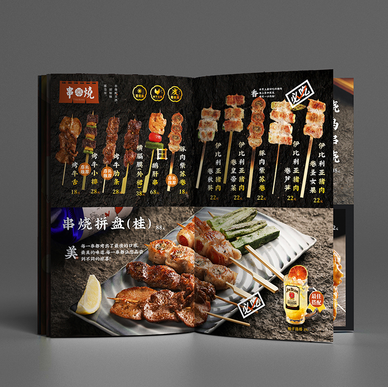 工作內(nèi)容:日本料理燒鳥居酒屋菜譜規(guī)劃,日本料理菜譜編排設(shè)計(jì),日本料理燒鳥菜品文案話術(shù)撰寫,燒鳥料理居酒屋菜譜印刷裝訂。