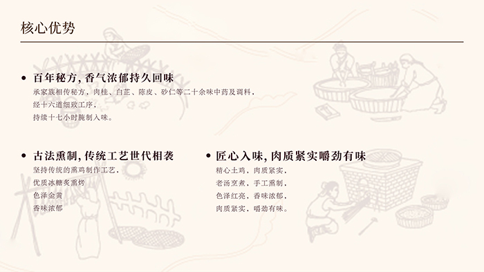 2、作為一個(gè)傳承了3代的熏雞品牌,我們?cè)撊绾螌⑵放频膬?nèi)涵展現(xiàn)出來?