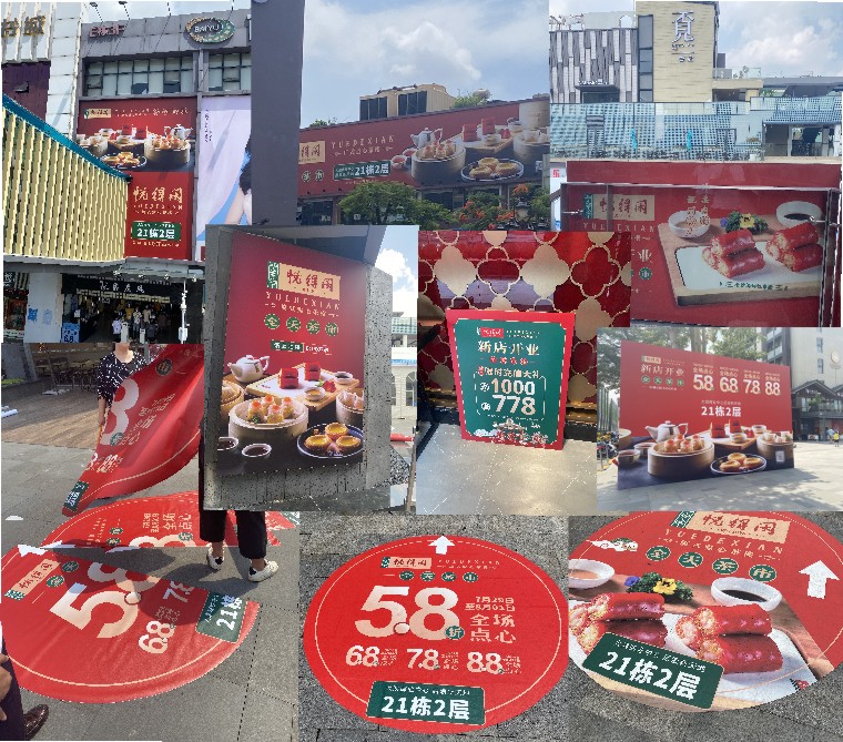 所有能做的觸點出發(fā)如:MALL(商場門口品牌墻、商場戶外廣告、地貼、電梯、樓層導視、電梯內(nèi)廣告、扶梯、吊旗、包柱、燈箱、墻體海報、刀旗、吊幔),網(wǎng)絡(大眾點評、微信、微博、頭條、抖音、小紅書、網(wǎng)站),大眾媒體(公交廣告、地鐵廣告、運貨車、電梯廣告)等等進行宣傳推廣,讓更多潛在客戶看到知道形成品牌記憶。