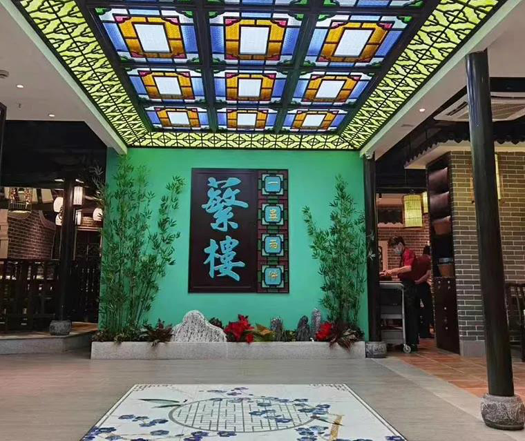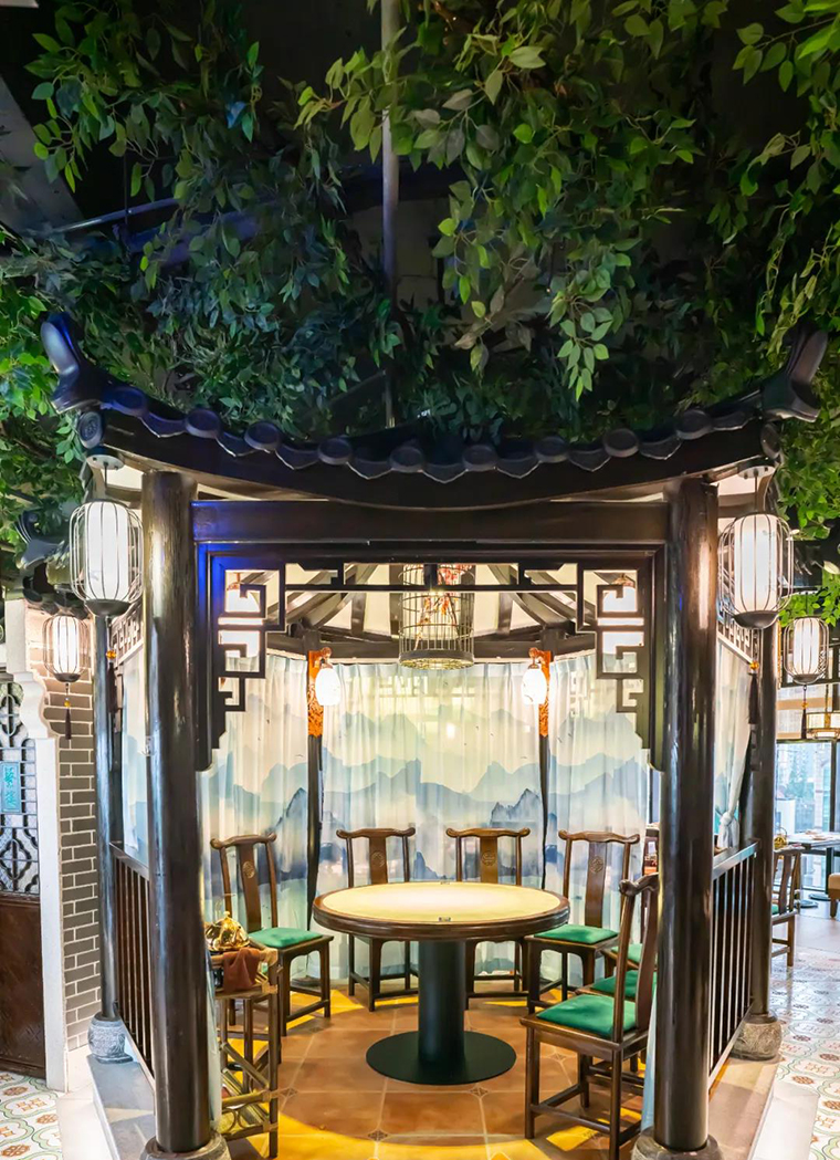 在空間裝飾上,堅持將傳統嶺南建筑常用的鑊耳山墻、滿洲窗、廣州老建筑的趟門,具有鮮明地域特色的西關大屋,廣府人最熟悉的雞公欖,在空間中靈活使用,達到了一種步移景異,一步一景的空間效果。