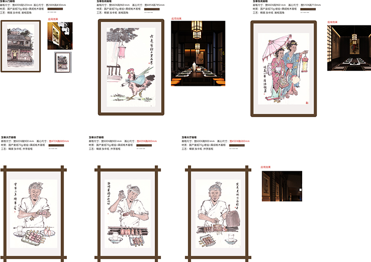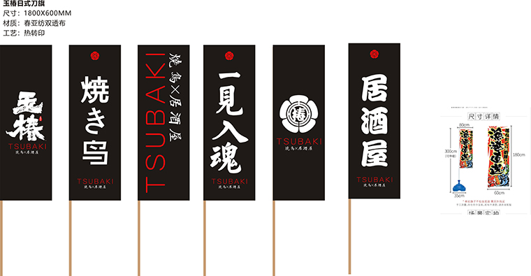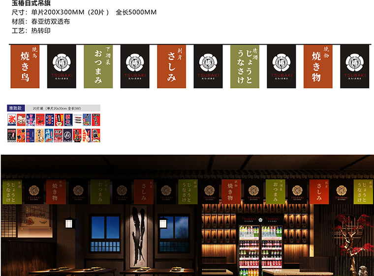 品牌記憶點(diǎn):日本京都風(fēng)格門頭設(shè)計+玉椿標(biāo)識及家徽+燒鳥手繪畫面+四大主色調(diào)。