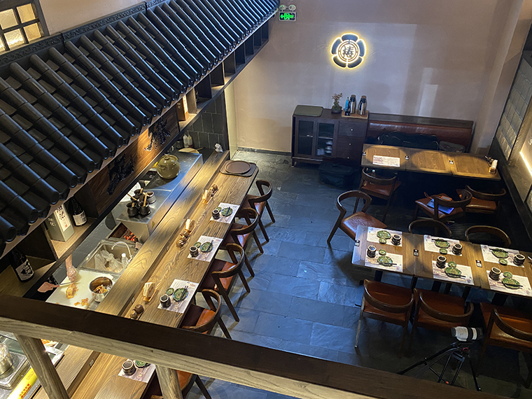 相對于其他日本料理,溫暖治愈有煙火氣的居酒屋是打開心門的神奇鑰匙。在這里,可以褪下面具,卸下防備,輕松肆意地喝酒聊天,大聲談笑,沒有職場的煩惱,沒有生活的瑣碎,有的是伴隨冰涼的鮮啤入喉部之后的片刻歡愉,有的只是一個釋放自我的放空間。居酒屋的熱鬧感,燒鳥店的煙火氣,京都老店的歷史文化魅力,是品深設(shè)計團(tuán)隊(duì)重點(diǎn)突破的設(shè)計表達(dá)。
