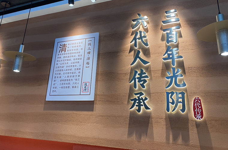 2、門店入門口上方懸掛錢三順匾額,匾額是中國文化中非常鮮明的符號。懸掛匾額讓人聯系歷史悠久,品牌是老字號,是傳承多年的。